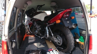 なので、その際に使う教習バイクを営業車に積み込み準備してました!!