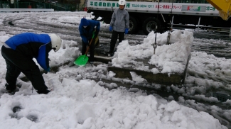 達成感を感じるのは、雪かきが終わってからだと気合を入れ直しいざ出陣!!全職員総動員で雪かきをやりました!!