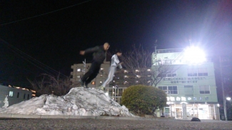 の雪山からのジャンプ大会を開催です!!予報通りにまた雪が降ってしまったら、もう本格的にジャンプ台を作るしかないですかね?!