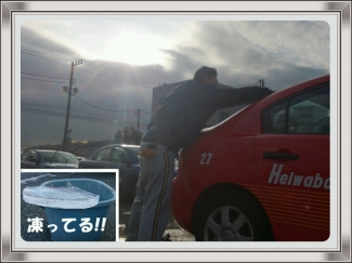 手もかじかむ寒さの中、手を真っ赤にしてひたすら洗車をするO橋指導員