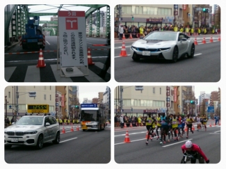 『まさか』と思い車から降り通行止めの先にあるマラソンコースへ・・・すると・・・スポーツ大会にふさわしいスポーティーな先導車が・・・
