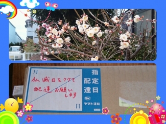 ダンボールには、配達指定日のシールが張っておりそこには・・・『仏滅日をさけて配達お願いします』と書いてありました!!