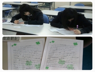 て』と言うと2人は快く書いてくれました!!お題『インターンシップについて』