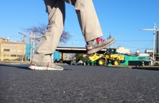 平和橋の大型特殊の教習車のホイールローダーが危ないΣ(°□°)⊃