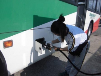 そんな蒸し暑い中、大先輩のY検定員がバスの給油をやっていました!!