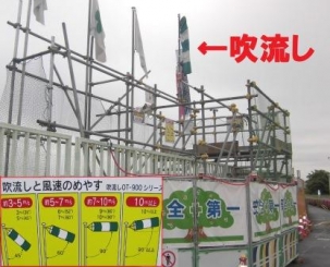 『吹き流し』が付いております!!これは風の強さを目で見て分かるようにしているもので、安全確保の為、色々な工事現場で付いております!!