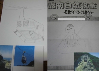 題で自然教室のしおりの表紙の絵を書いてくるように言われたようです!!