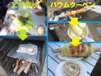 そして普通の炉を鉄板でふさいだ即席のピザ窯で焼いて完成です!!普段なかなか野菜を食べない子供たちもトッピングのピーマンなどでも