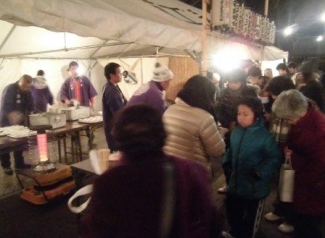 なのでお汁粉を配っていると参拝者の方々に「待って冷えきった体が暖まる、ありがとう」、「寒い中、待って良かった」、「待ったかいがあった」などとうれしい言葉を言って頂きました。(嬉)
