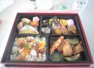 と、言うのはウソで前日にあったイベントの余ったお弁当をいただいたので翌日のお弁当に・・・。中身を見ていなかったので開けてビックリ!!普段食べないような手の込んだおいい弁当でした(^o^)///
