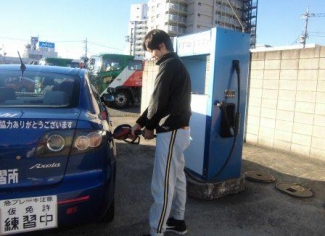給油しているS指導員も静電気に注意して給油していました!!そう言えば給油で最近気になる事が・・・。近年セルフ式ガソリンスタンドが増えて自分で給油するスタイルが多くなりましたが、静電気も当然注意しますが、それ以外も注意しなくてはいけません!!その一つが給油終わってノズルを戻す時、滴を切ろうとノズルを車の給油口にコンコンコンって振って当ててる光景を目にしますが、とっても危険です!!鉄と鉄が当たって火花が出れば大爆発!!(怖)