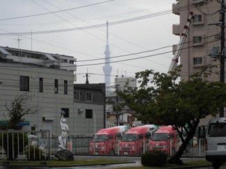 写真は今朝の空模様と教習所から見える東京スカイツリーそしてそのスカイツリー方面へ行く送迎バスをカシャっと撮りました!!!《スカイツリーまで直線距離で約4km》