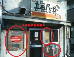 有名になったのが「手動式自販機」???これ意味分かんないですよねーー。実はこの自販機はお店のオーナー手作り!!お金を入れて店内で入金が確認されるとオーナが作ったからくり仕掛けを動かしハンバーガーを提供するシステムになってるんでーす。最近はネット通販や自販機の普及で相手の顔が見えない商売が進んでいますがこの自販機だったら非対面なんだけど売る側、買う側の気持ちがつながってる感があり、ある意味新鮮でした。自分もこの日記を見てもらってる皆さんとつながってる感を持ってもらえるように、この日記も非対面なんですけど新鮮な情報やネタをできるだけ多く提供、更新して少しでも平和橋を気にしてもらえるようにがんばります。これからも見るだけでもいいんでよろしくお願いしまーす。(>g<)///