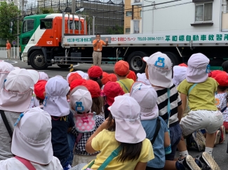 そして本物のトラックや乗用車を使って交通安全教室を行いました。