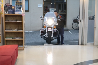 さて、平和橋教習所の1階ロビー内にバイクが展示してあるのが印象的だと思いますが、あのバイクどこから搬入搬出しているのかご存知ですか?