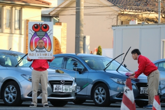 藤川指導員が黙々と洗車する中、小貫検定課長はインスタばえの顔ハメにハマってました(*^ワ^*)
