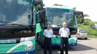 なんと偶然にも私たちの乗ってきた同じ会社のバスがもう一台!(本当に偶然)