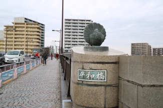 南北に延びる道(平和橋通り)を1本の橋が繋いでくれています。