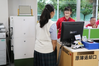 現在インターンシップで近くの高校から名の生徒さんが勉強に来てくれています。今日は受付業務を勉強中です。