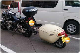 けん引車と言うとトレーラートラックなどを連想しますが、写真を見てお分かりの通りバイクのけん引車なんです。