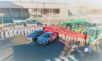 写真は、都バスの運転手さんになるための登竜門の入社実地試験の様子です。