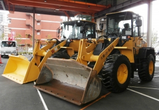 実際の現場で活躍する車両と免許を取るために使う教習車の2台が同型機同士で並んでいるのは、ありそうでないシーンです。