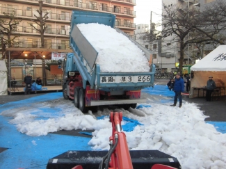 今日は、新潟県南魚沼市から大型トラック5台分の雪が運ばれてきました。