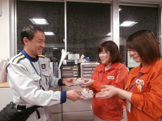 受付スタッフに飴を渡している様子です。恥ずかしといいながら、とても楽しそうでしたよ(^.^)こちらの飴ですが、受付カウンターに置いてあるんです!!!受付カウンターを利用する方専用ではありませんので、皆さまご自由におとりくださいませ!(^^)!飴はリラックス効果や精神を落ち着かせる効果があるそうです。教習所では慣れない運転で気を張ったり、緊張する場面が多いと思います。私も検定前や初の路上教習は、特に緊張したの今でも思い出します。休憩時間等 好きな音楽を聞きながら、飴お一ついかがですか?気持ちに余裕ができ、教習がいつもより少し楽しく感じるかもしれません。(ただし教習中の飲食はご遠慮ください)♪(*^-^*)是非ご利用くださいませ♪Satomi