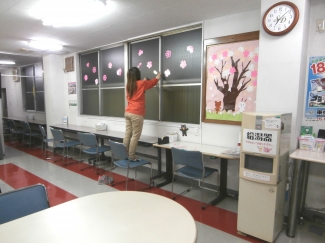 この歌詞にもあるように桜のつぼみが春へと向かっているので受付スタッフで桜の花びらを一生懸命作成中です!!