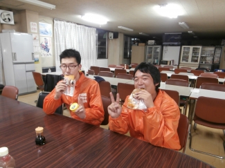 草刈り終了後、休憩室であまりにもおいしそうにパンを食べていたので思わずカメラを向けてしまいました。