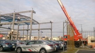 クレーン学校実技場を作る際にも活躍しているのがクレーンですね。