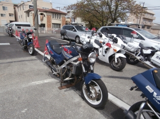 ☆大会後、引退した教習車両【VFR400】の横に現役の白バイ【VFR800】が仲良く停まっていたので撮ってみました!!