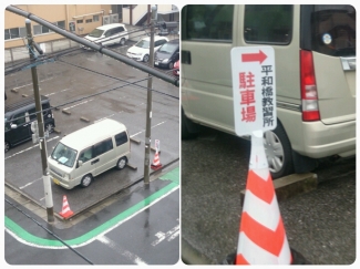 平和橋は校舎のすぐ斜め前にお客様用駐車場をご用意させて頂いてお