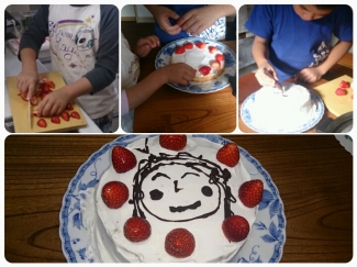 そして夕食の後にママへサプライズでケーキをプレゼント!!とっても喜んでくれたママの顔を見てそれ以上に喜んでいた子供たち!!