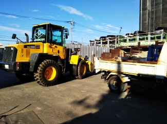 運ぶダンプカー、荷台に乗せるホイールローダー乗り物いっぱいでカッコ良かったです。
